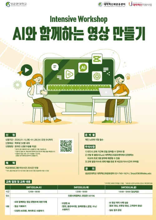 대학혁신과공유센터에서 진행하는 “AI와 함께하는 영상 콘텐츠 만들기(4차)”의 참가자를 모집합니다!