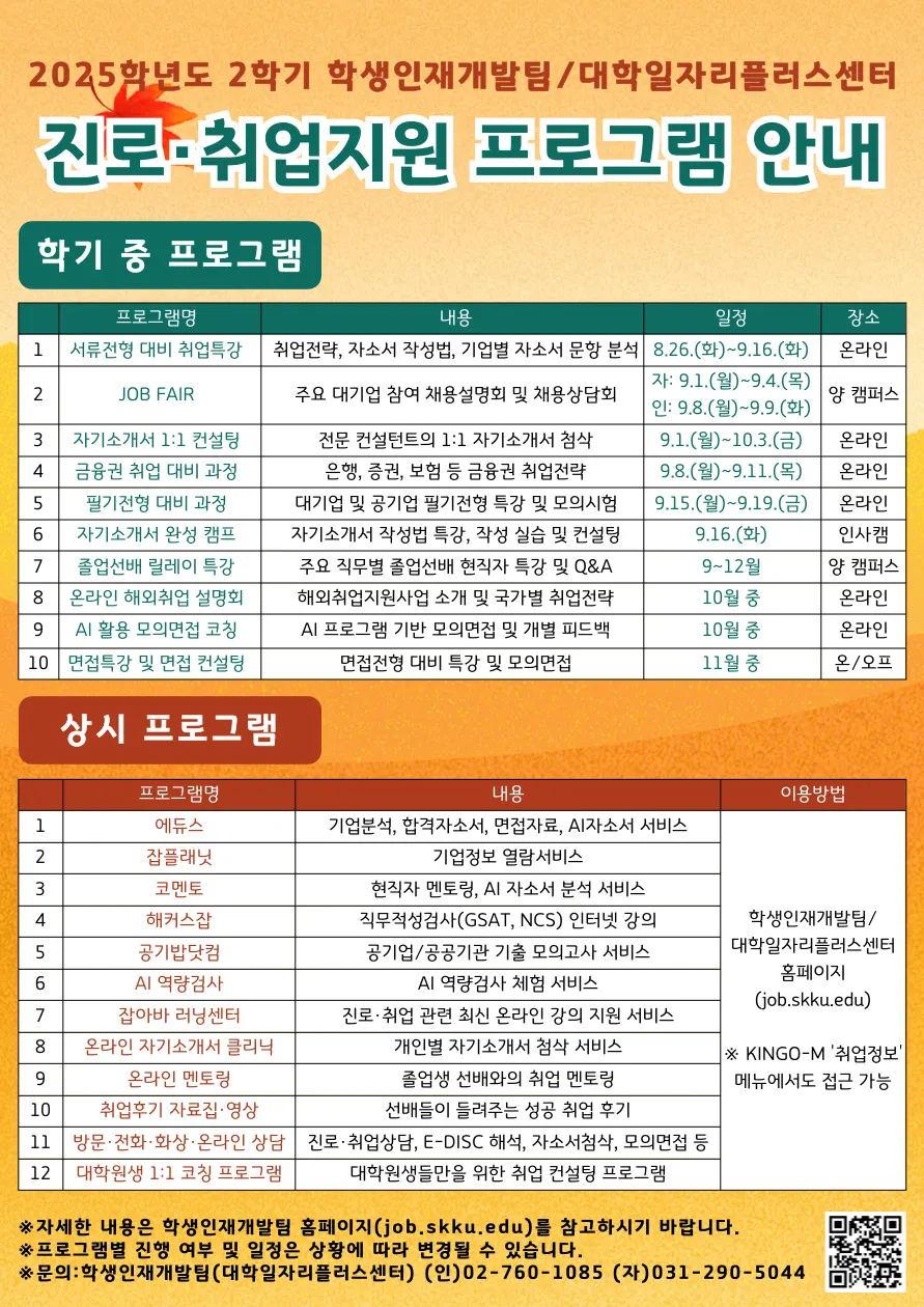 - 운영방식 문의: 소속 학과 행정실