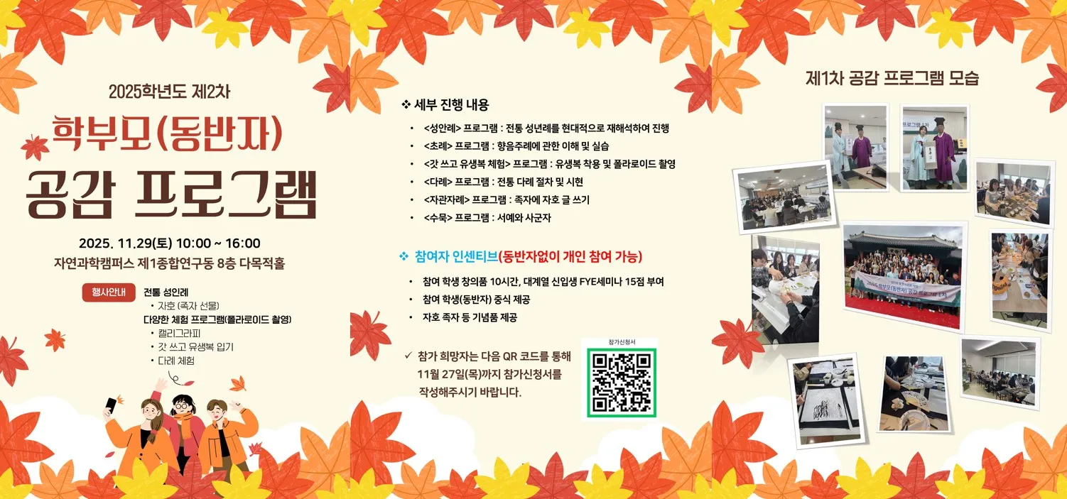 - 참가 대상: 본교 학부생 90명 내외(학부모, 가족, 친구 포함)