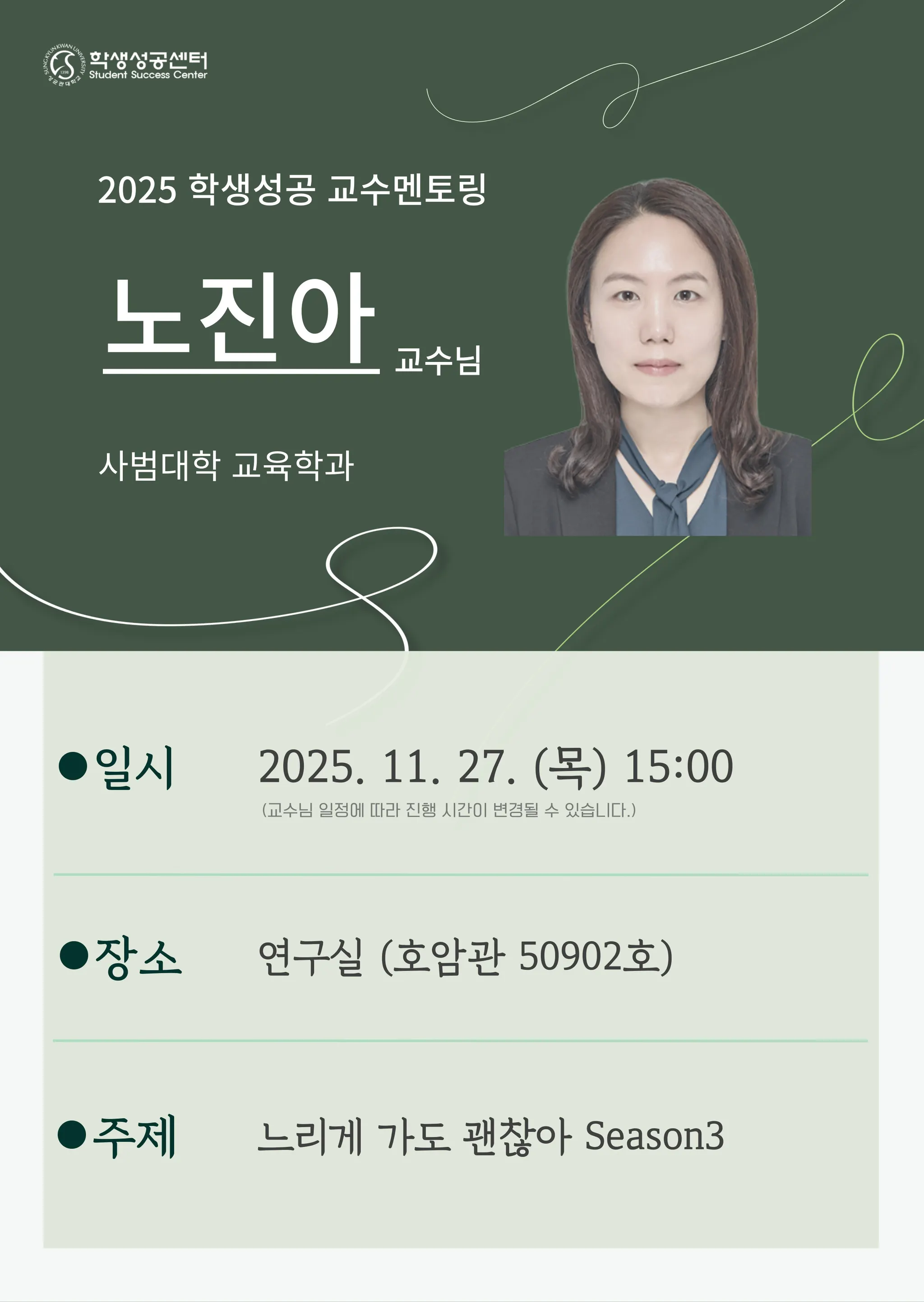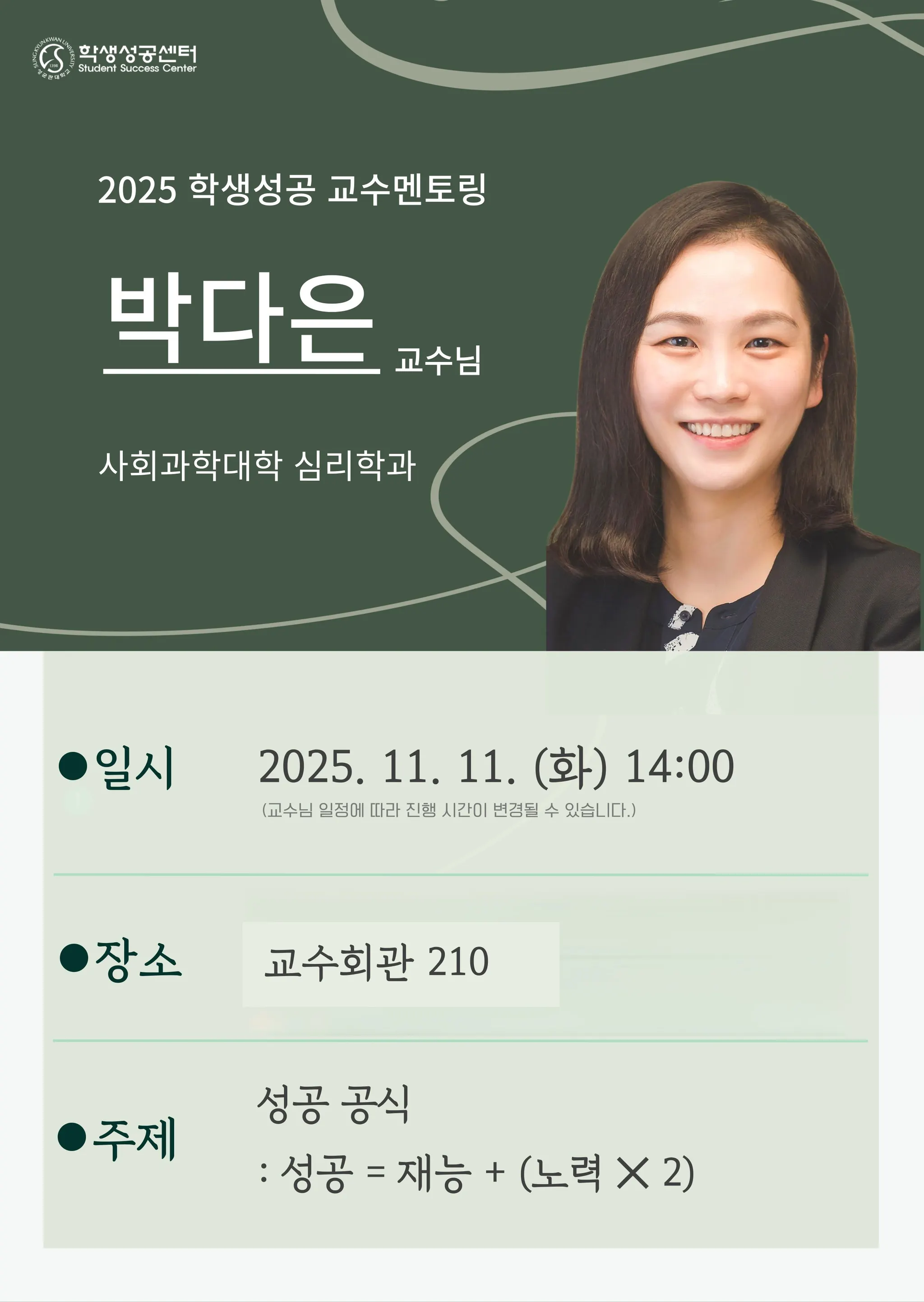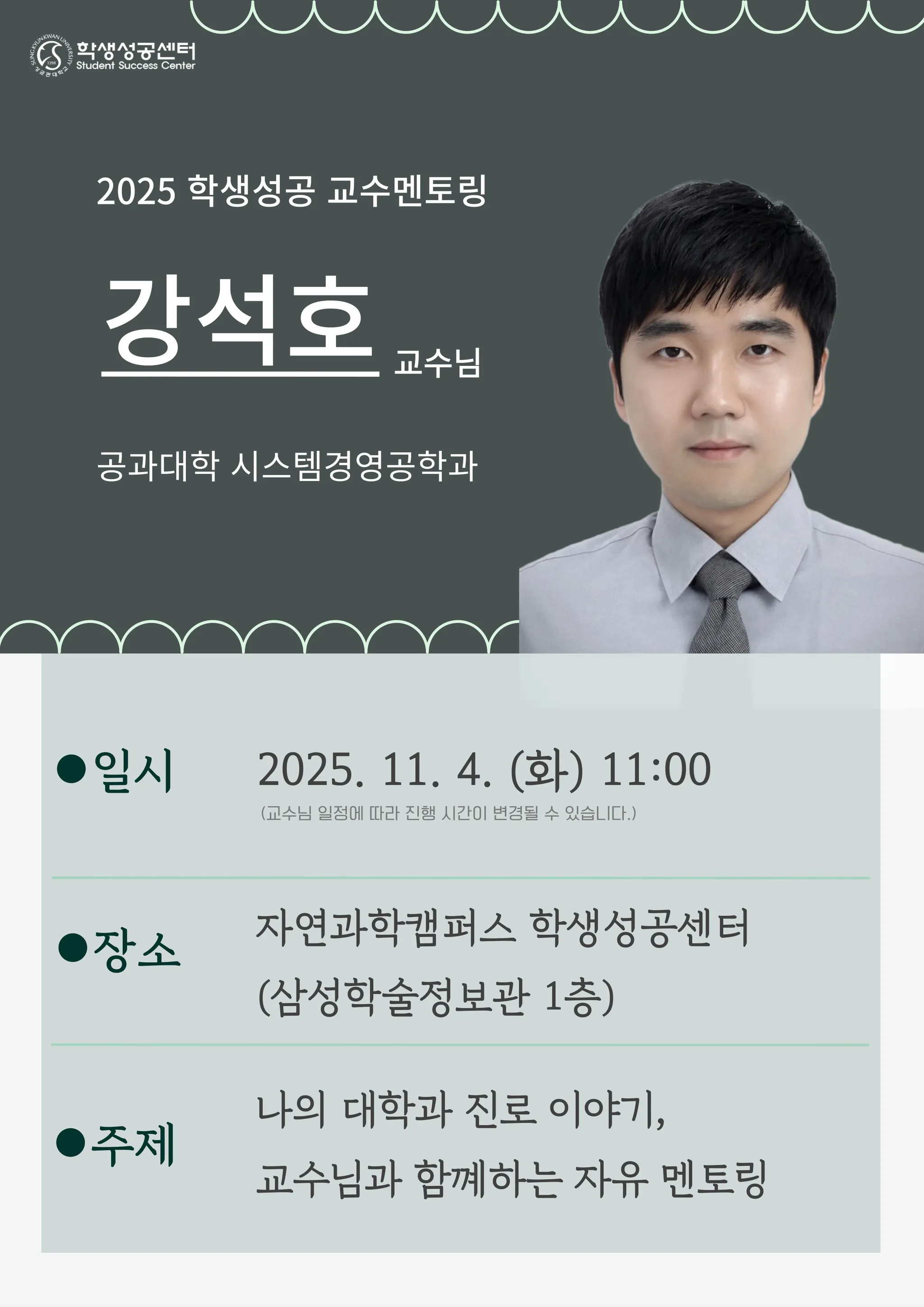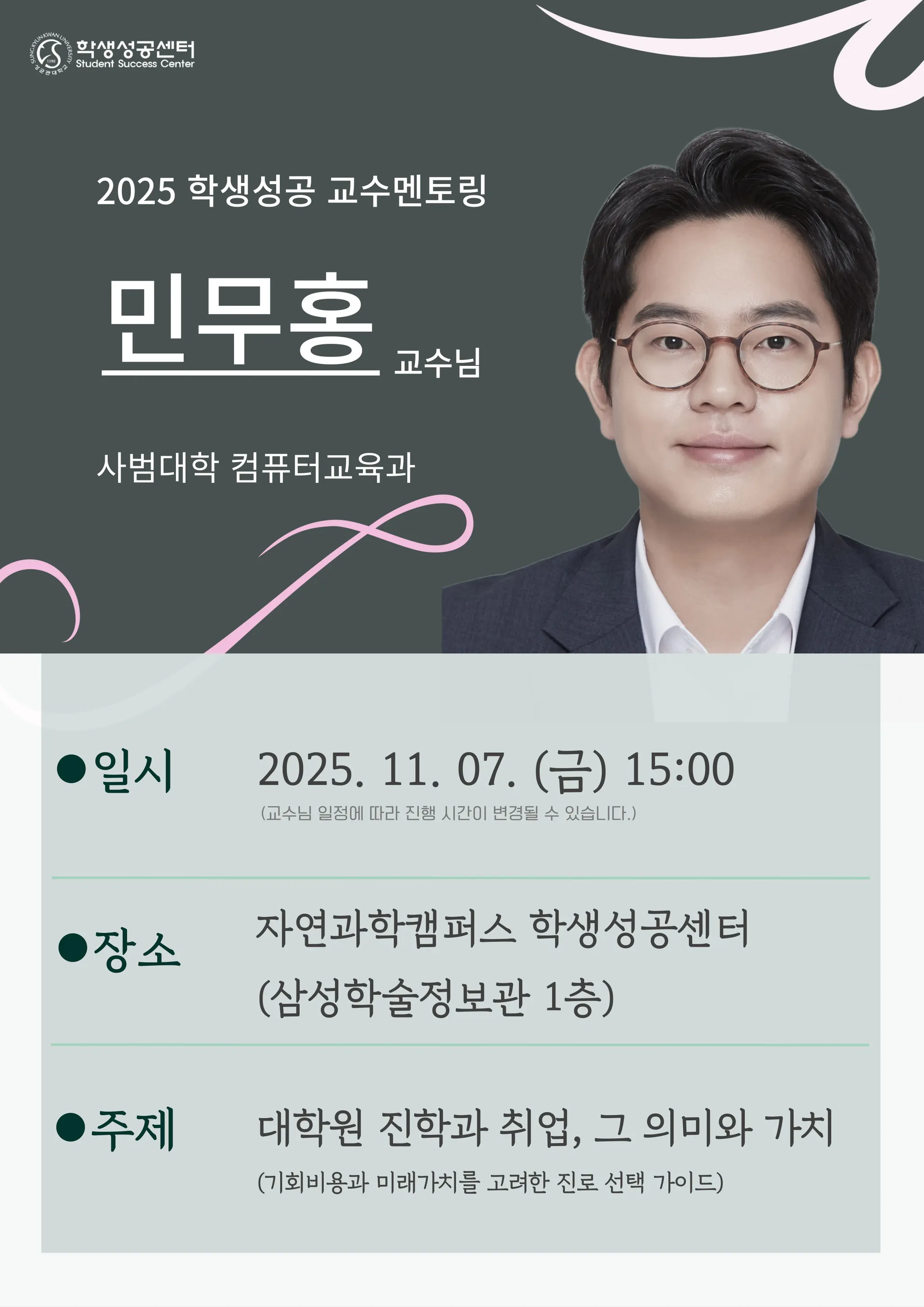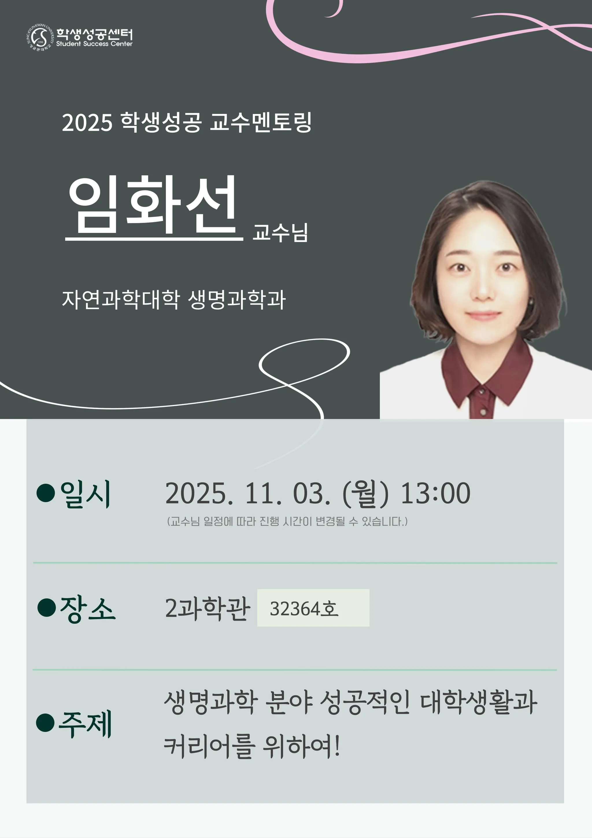 - 부득이한 사정으로 불참할 경우 멘토링 시작 3일 전까지 학생성공센터에 연락 요망