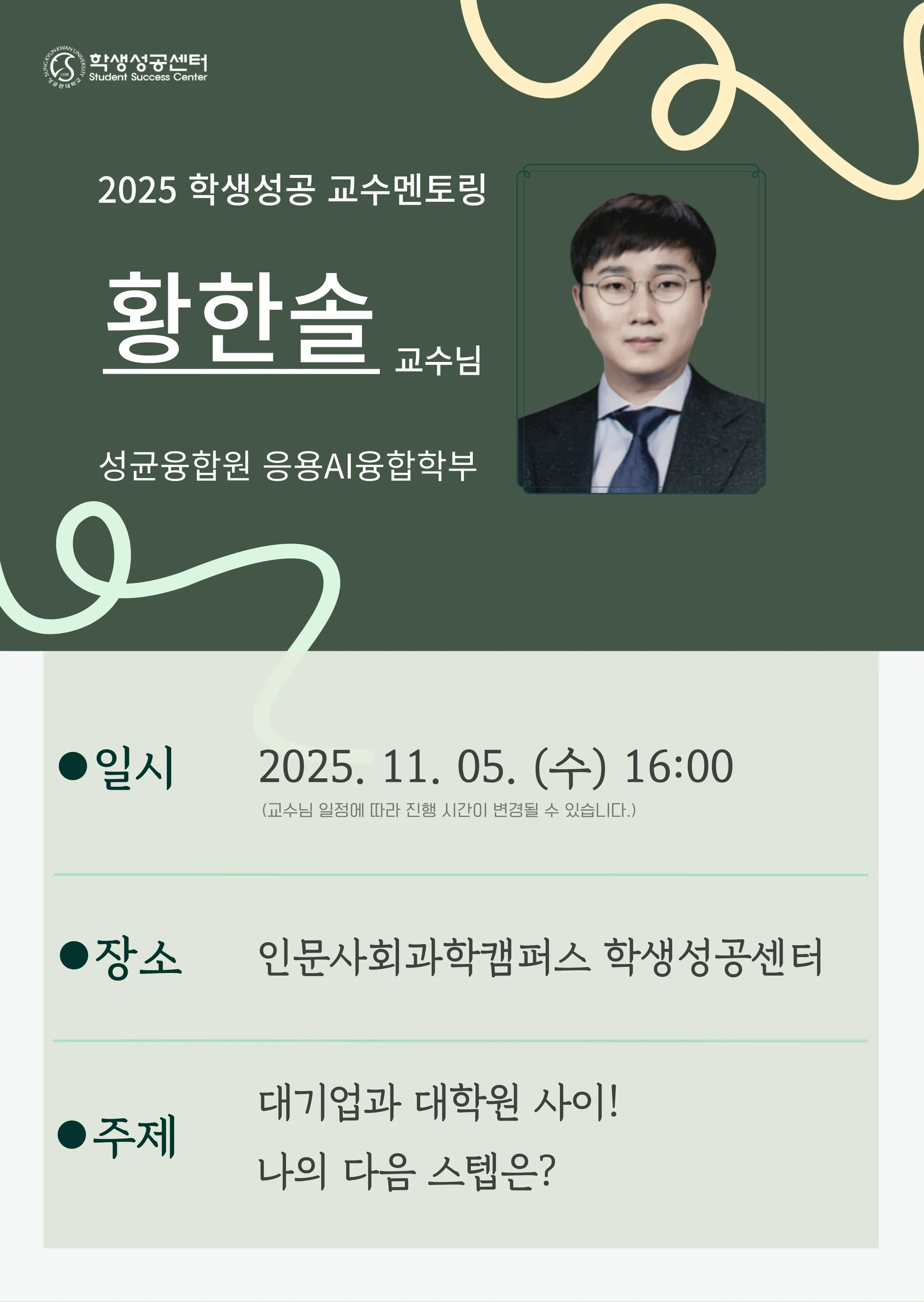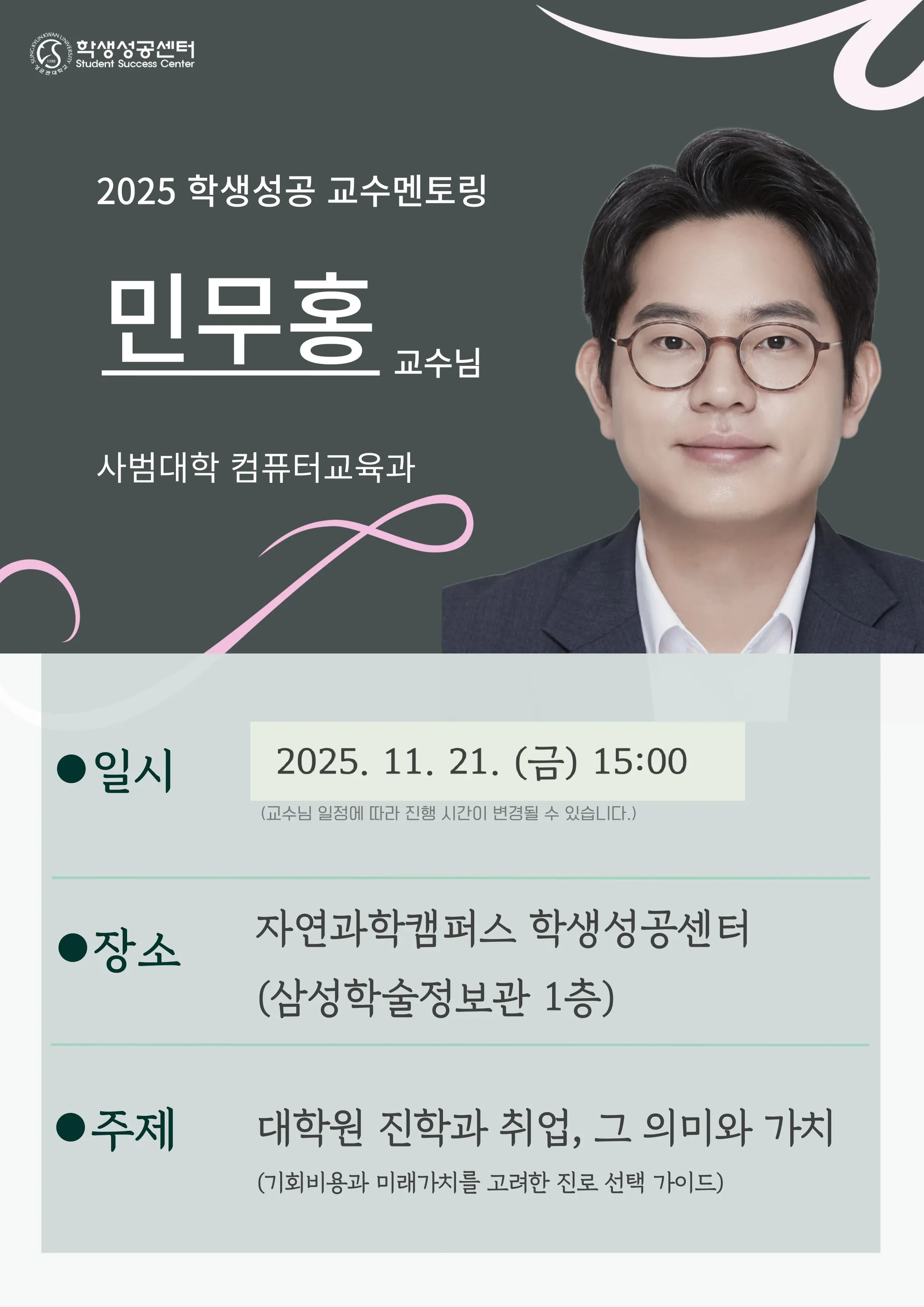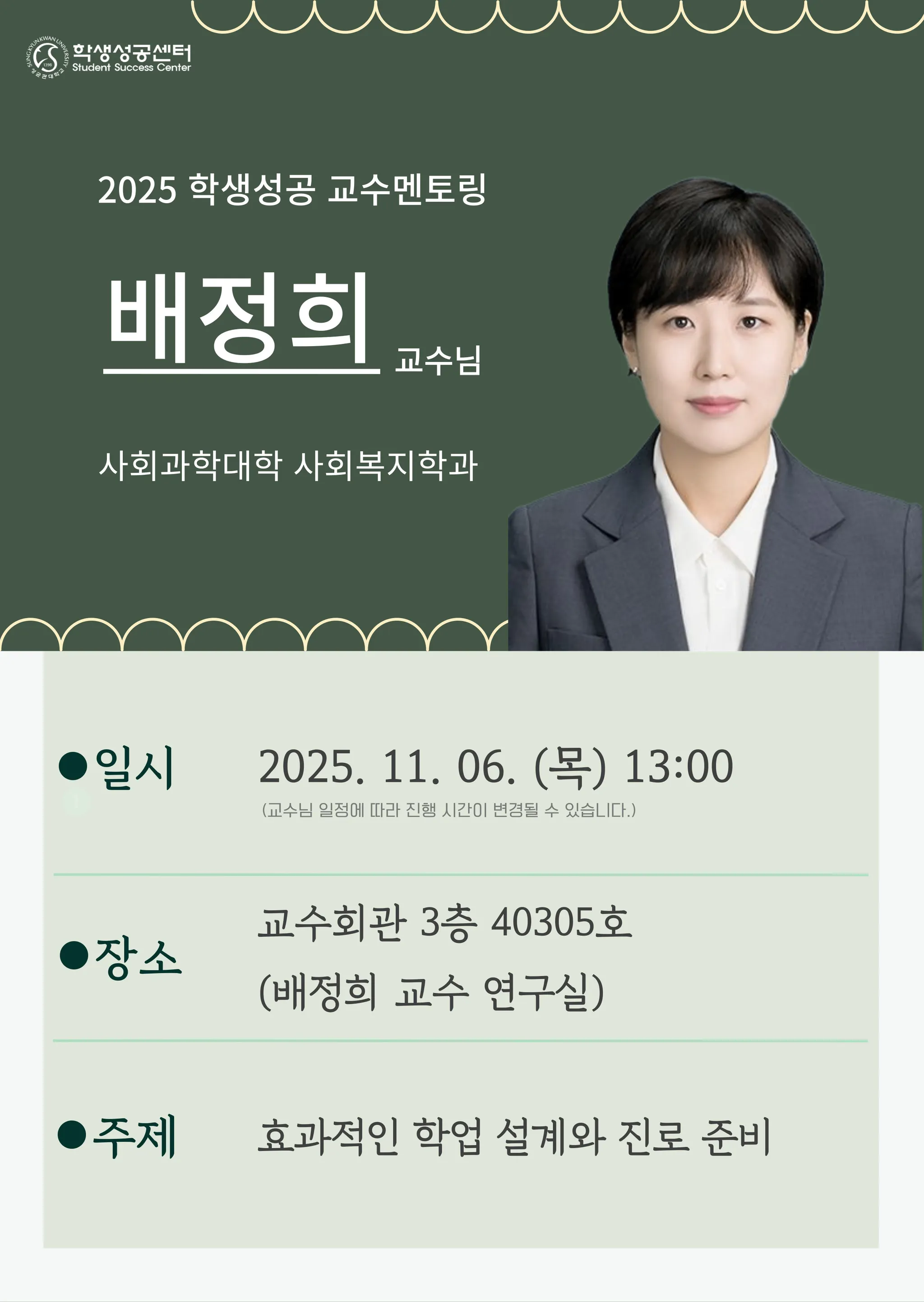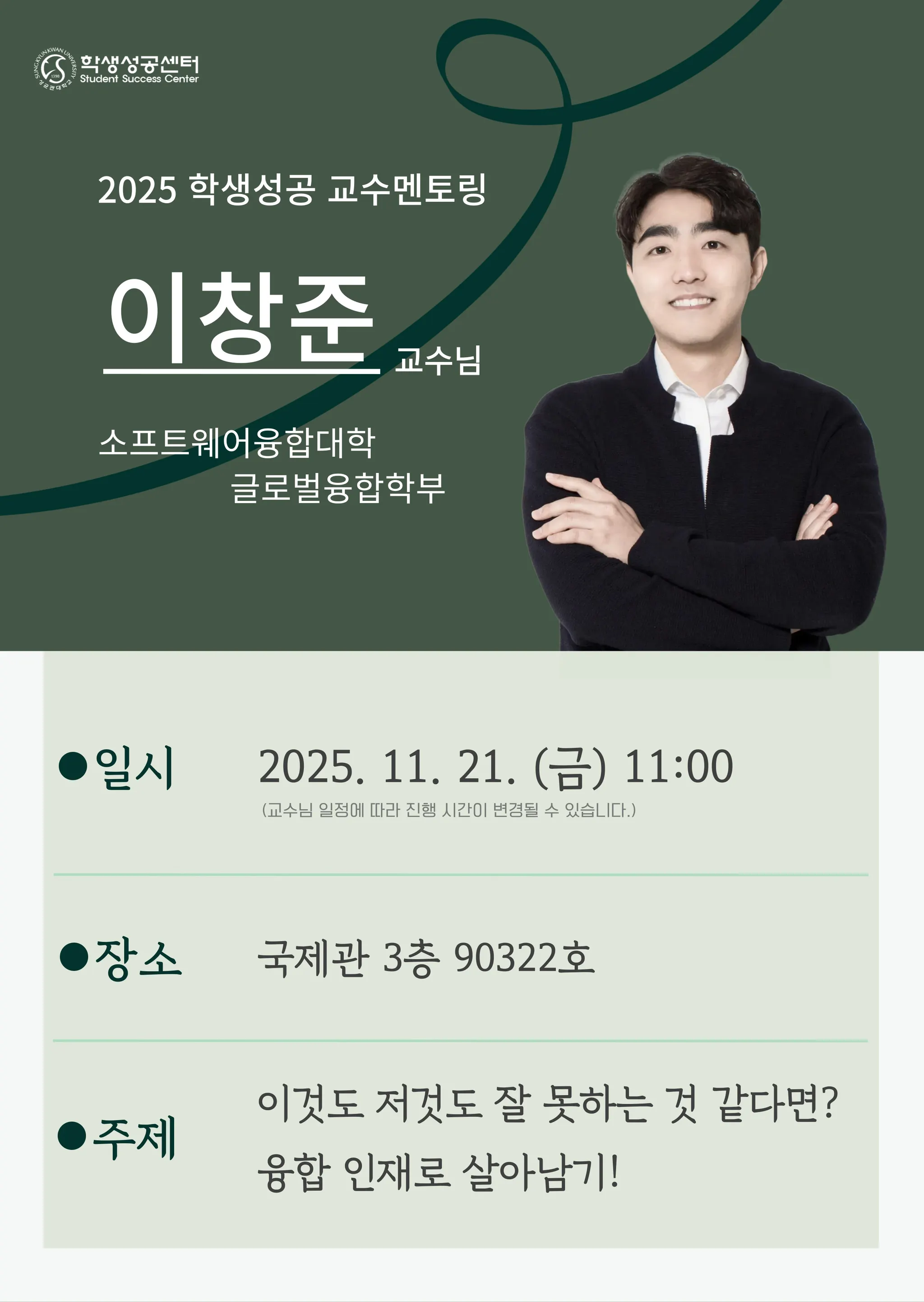 - 부득이한 사정으로 불참할 경우 멘토링 시작 3일 전까지 학생성공센터에 연락 요망