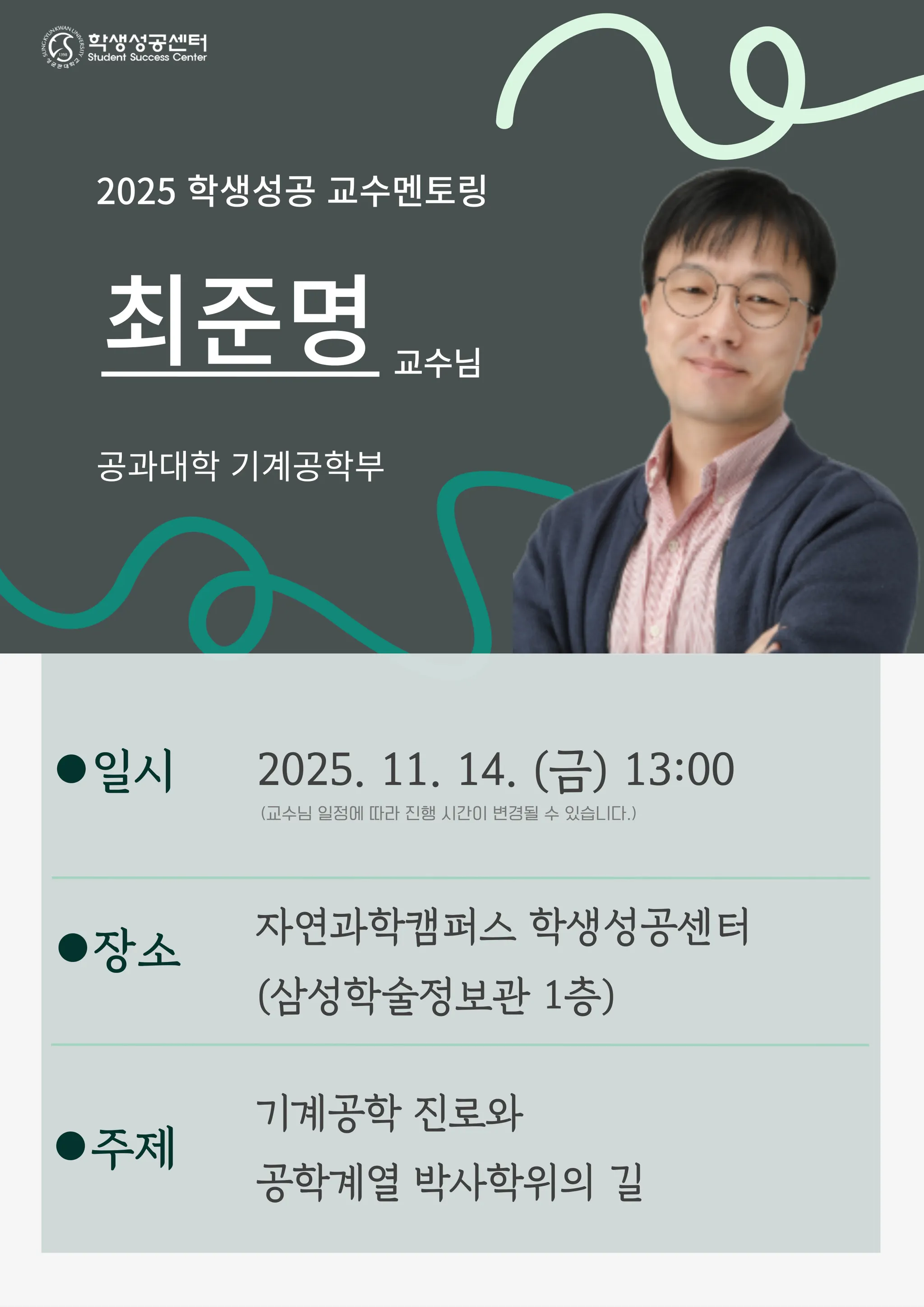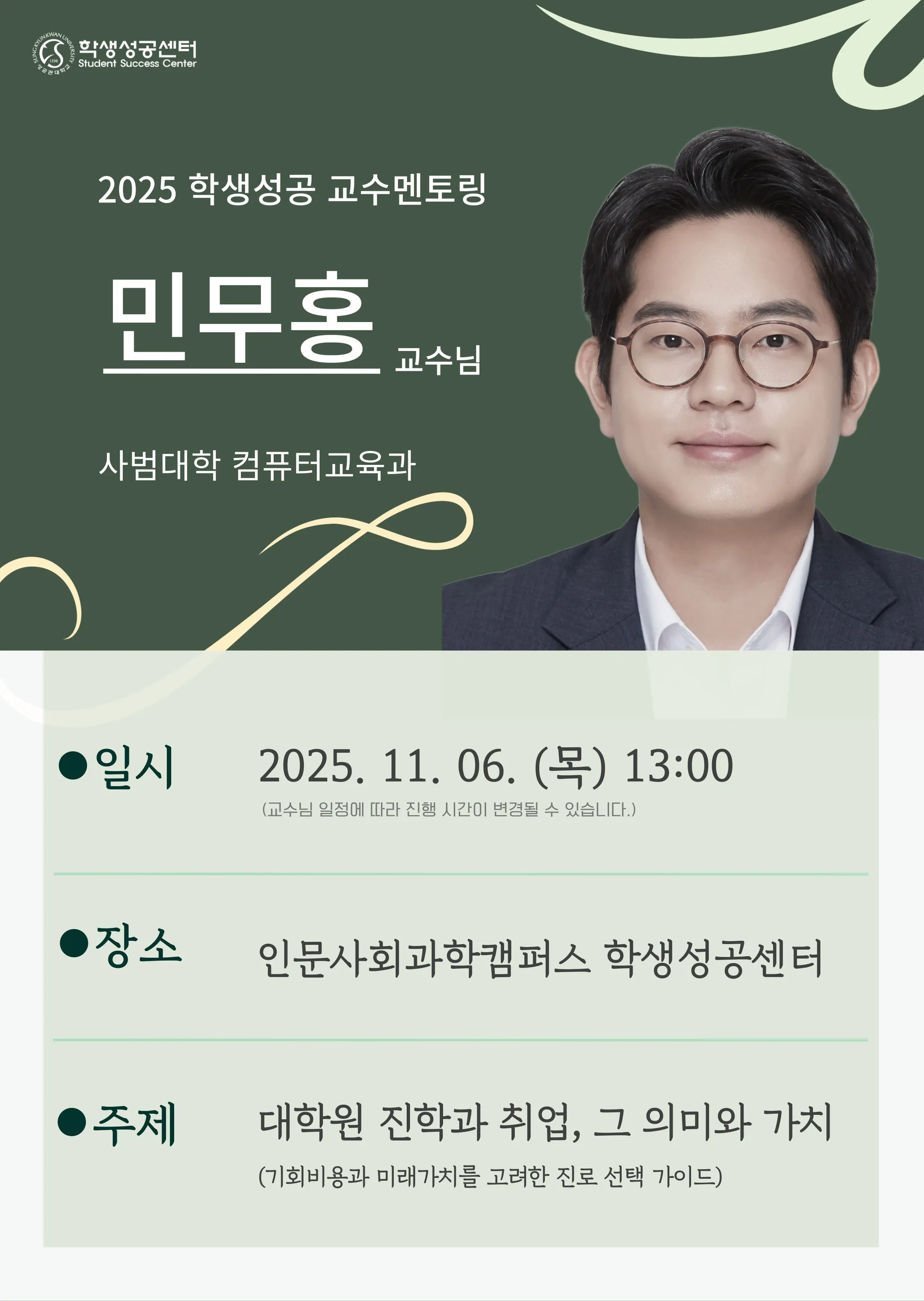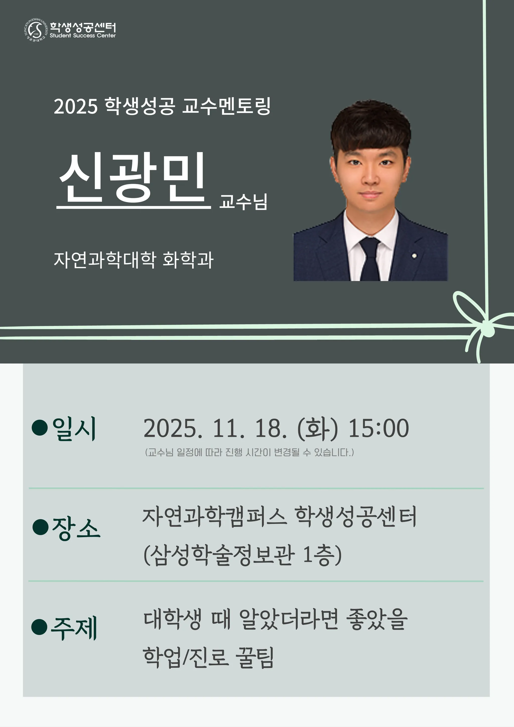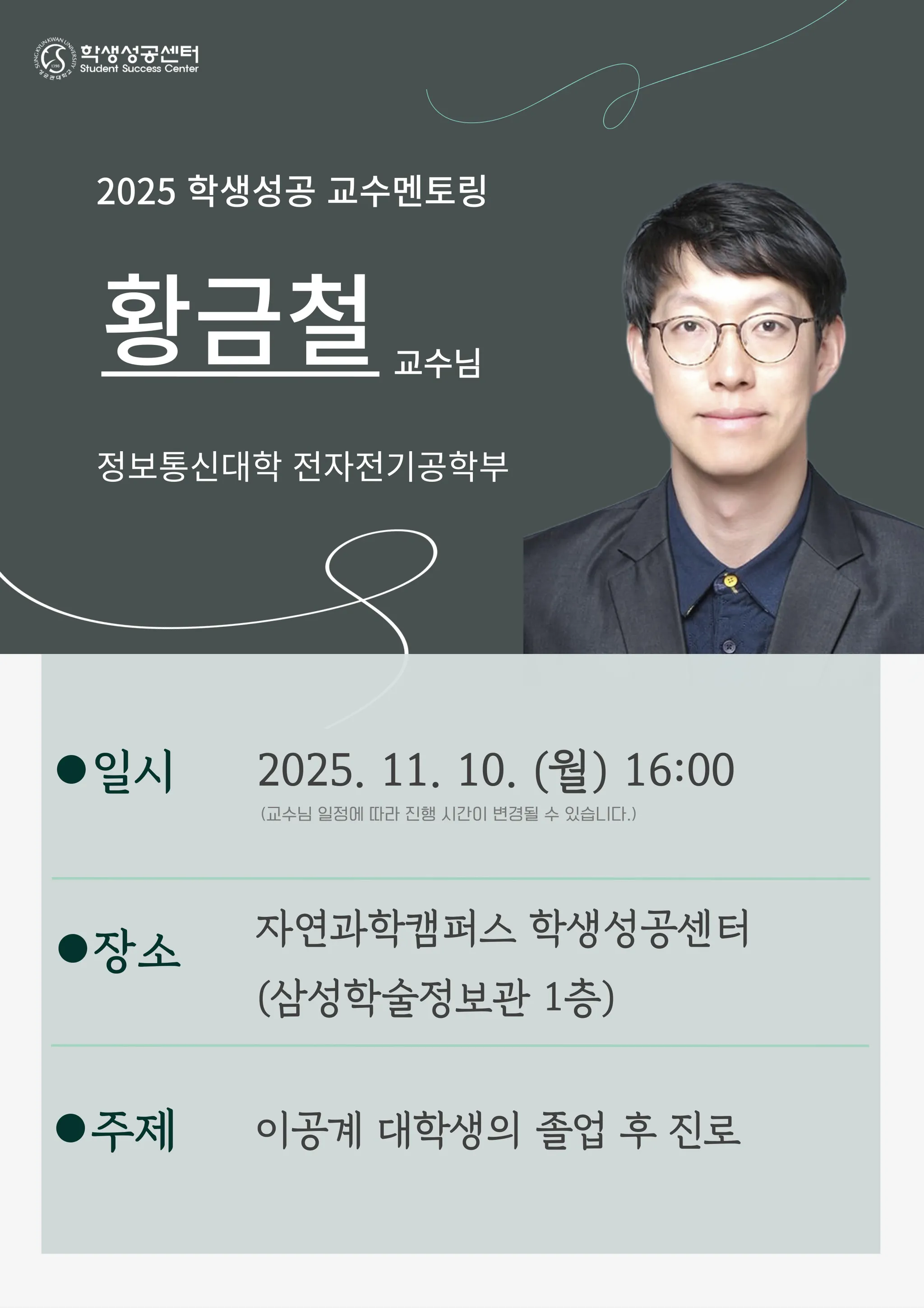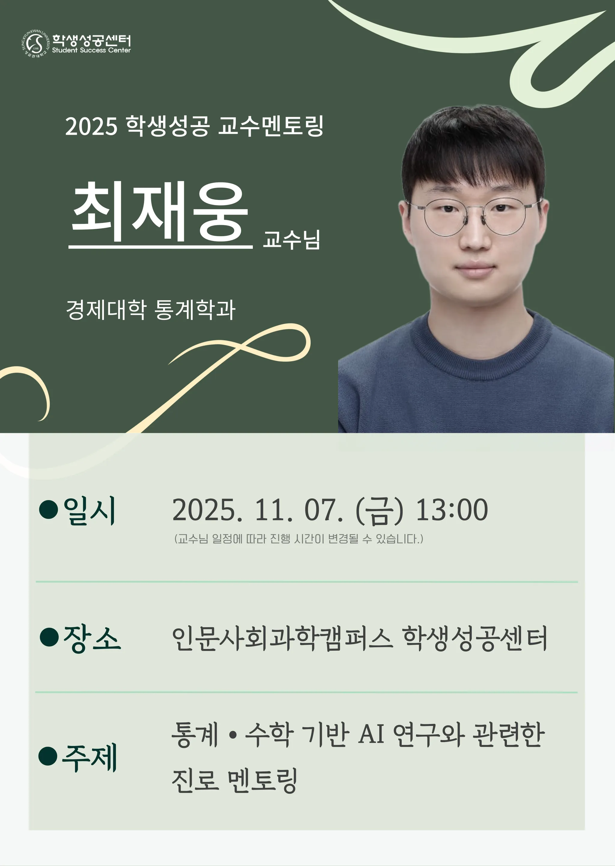 - 부득이한 사정으로 불참할 경우 멘토링 시작 3일 전까지 학생성공센터에 연락 요망