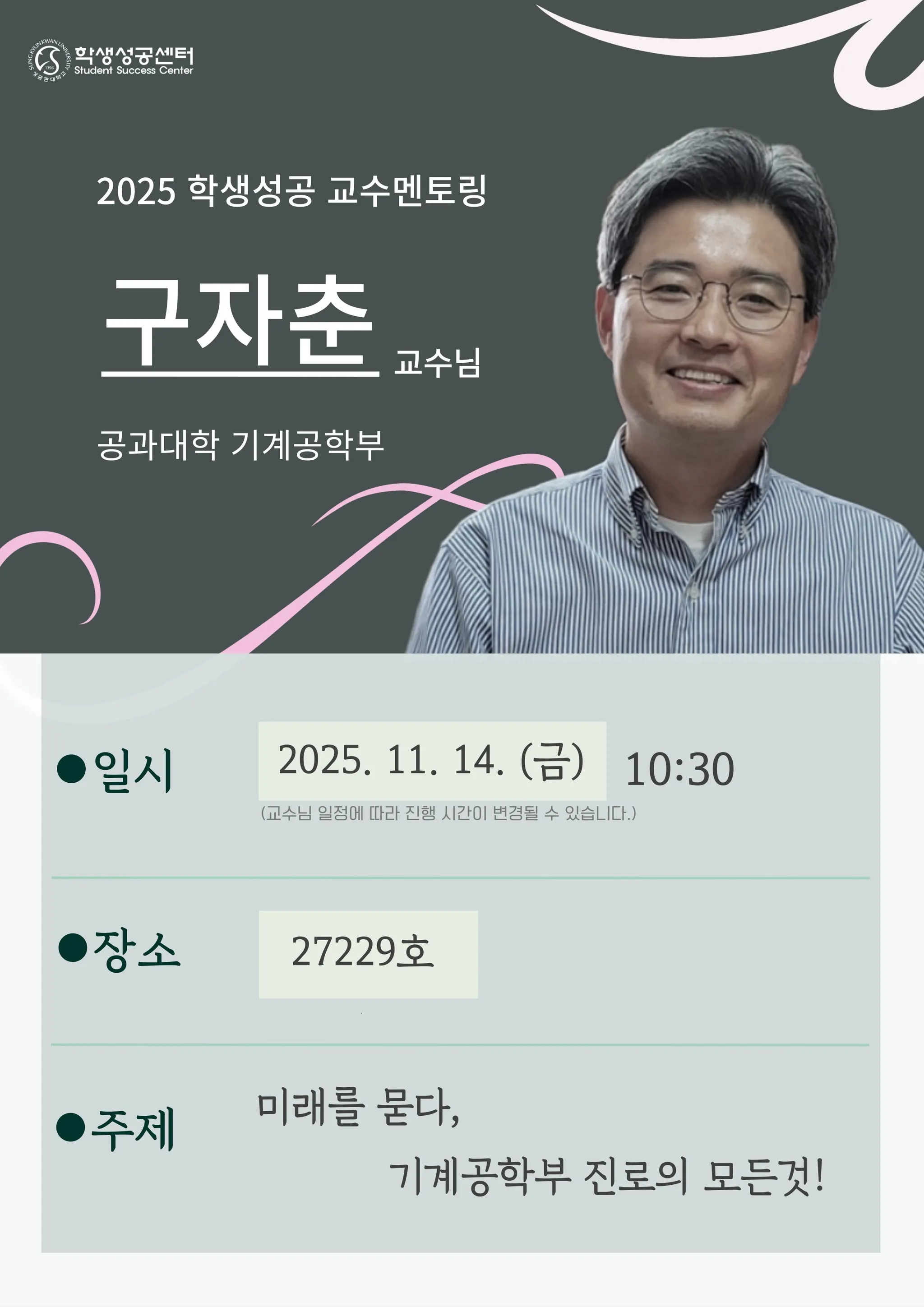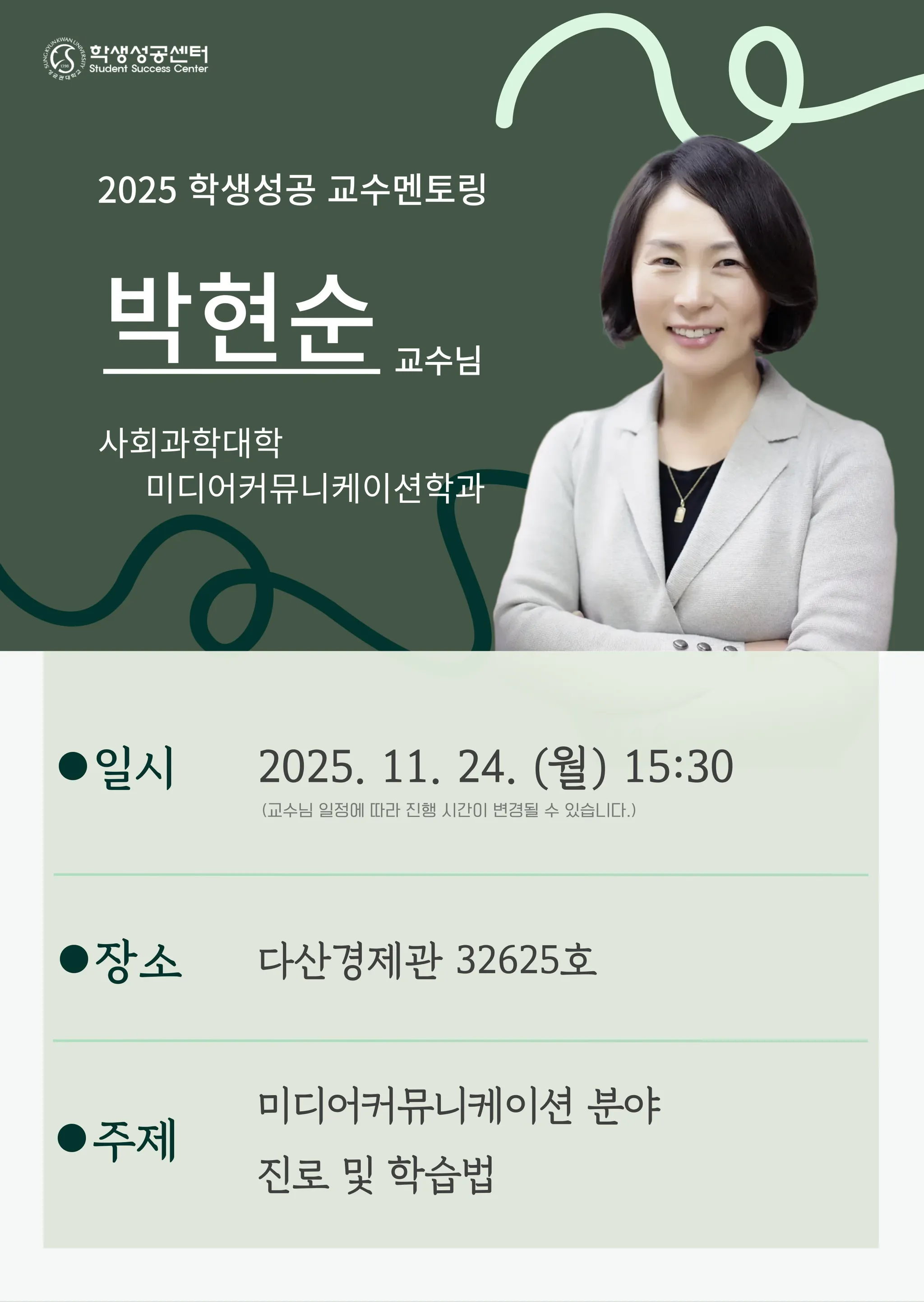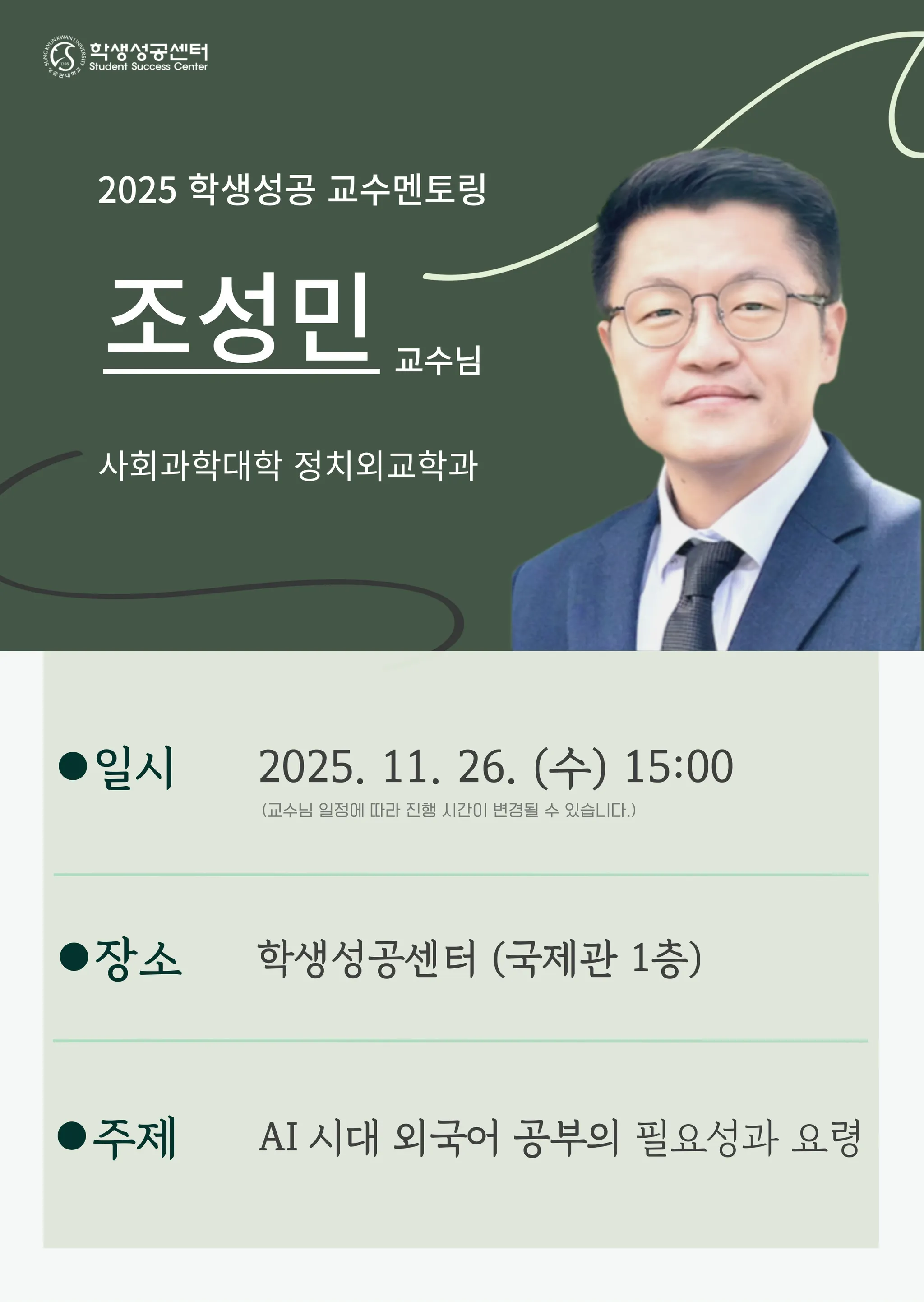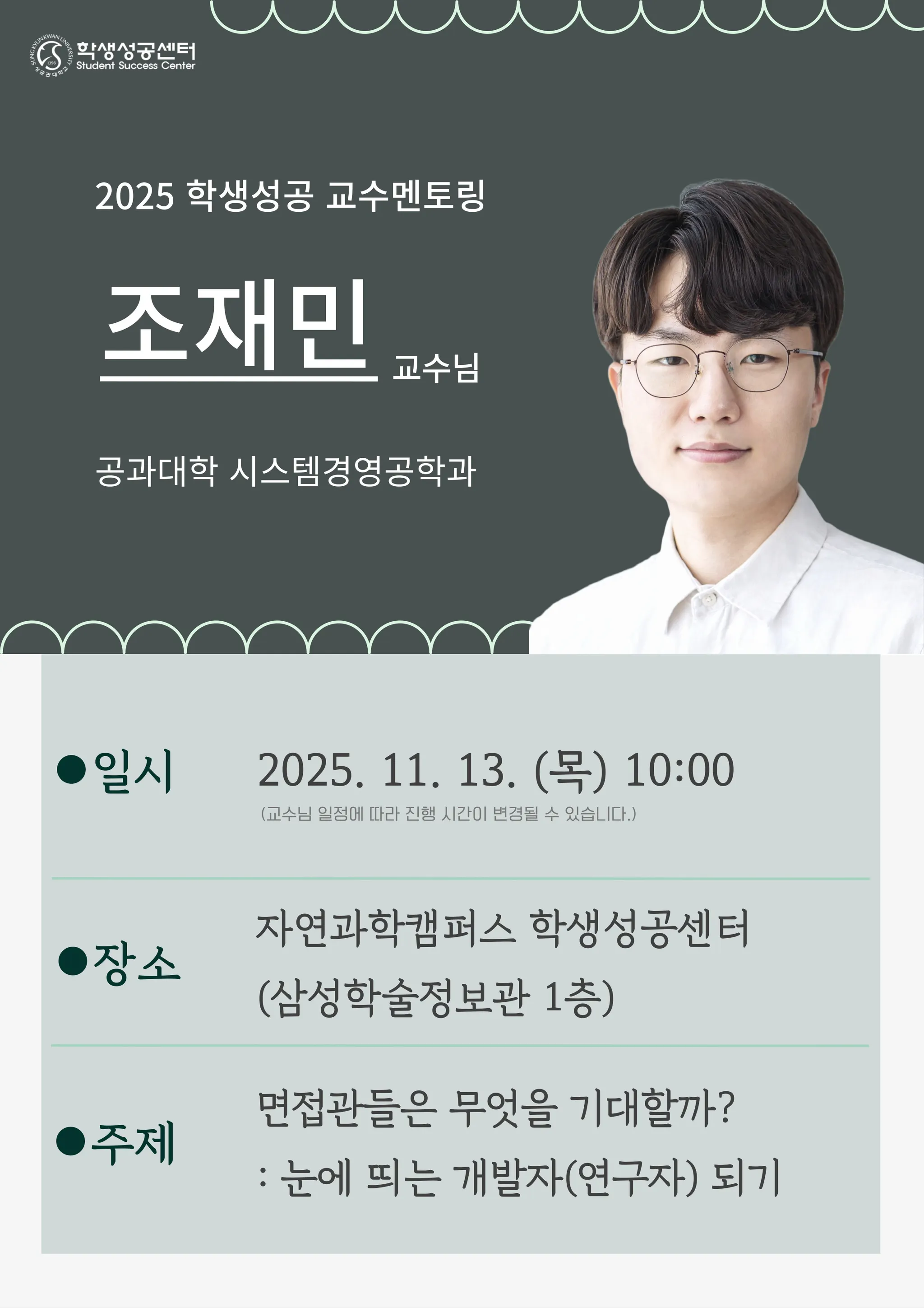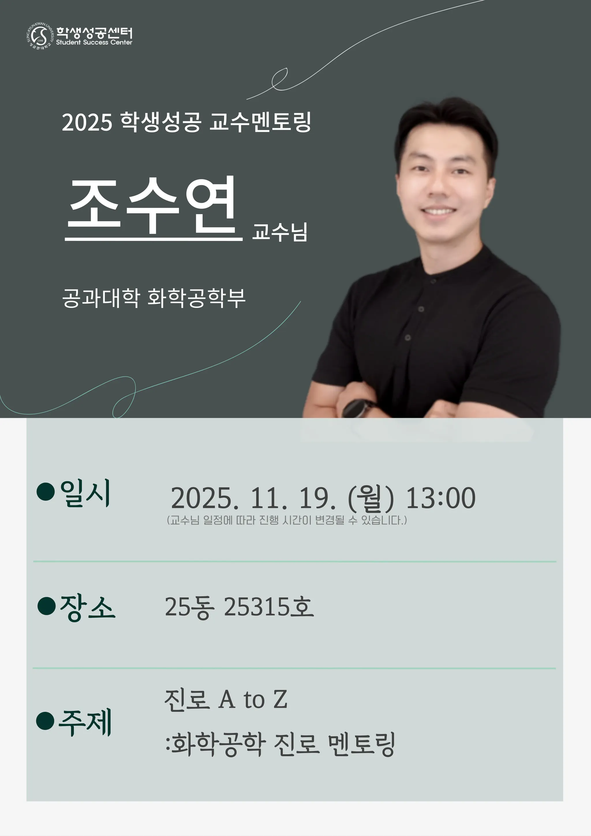 - 부득이한 사정으로 불참할 경우 멘토링 시작 3일 전까지 학생성공센터에 연락 요망