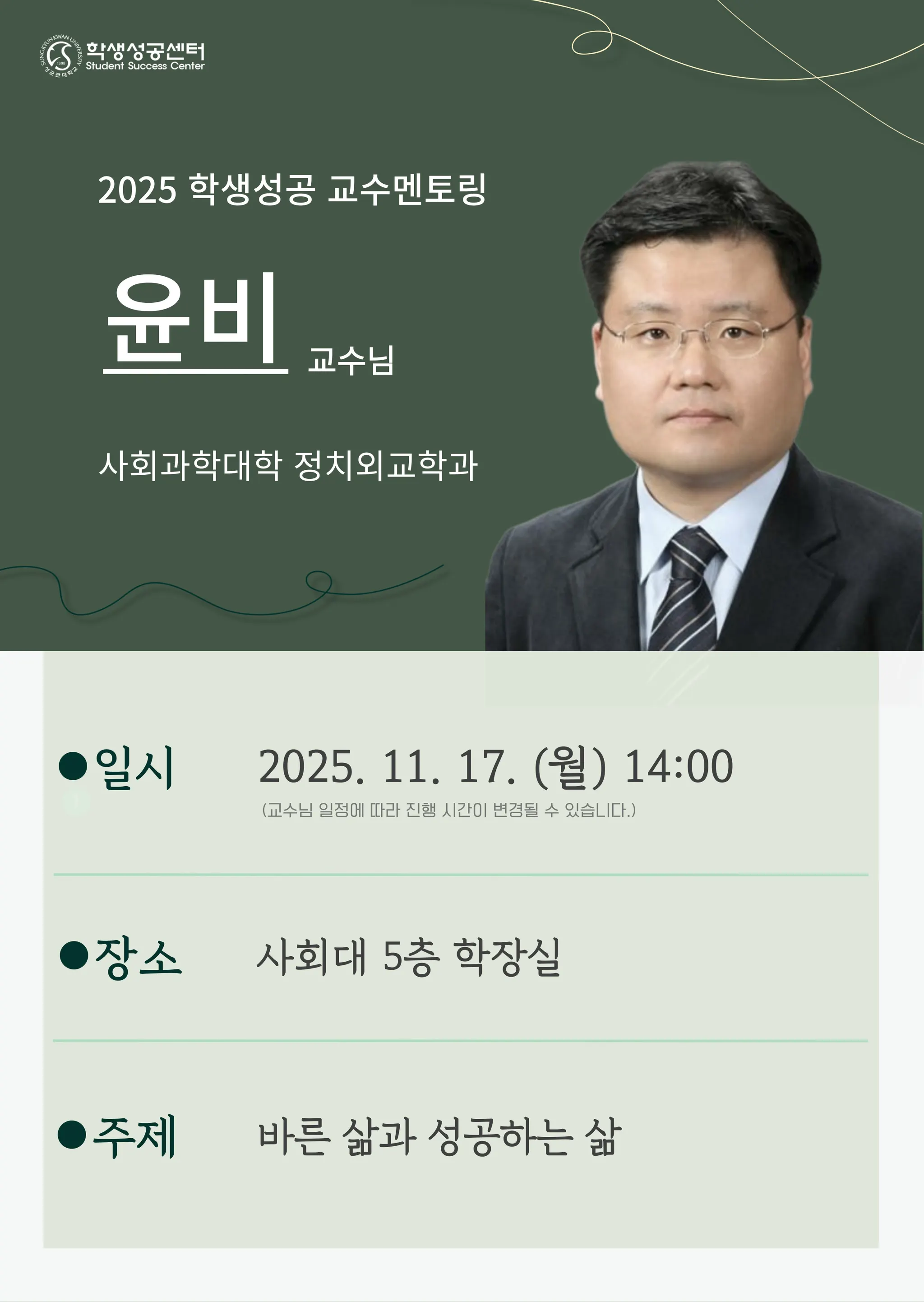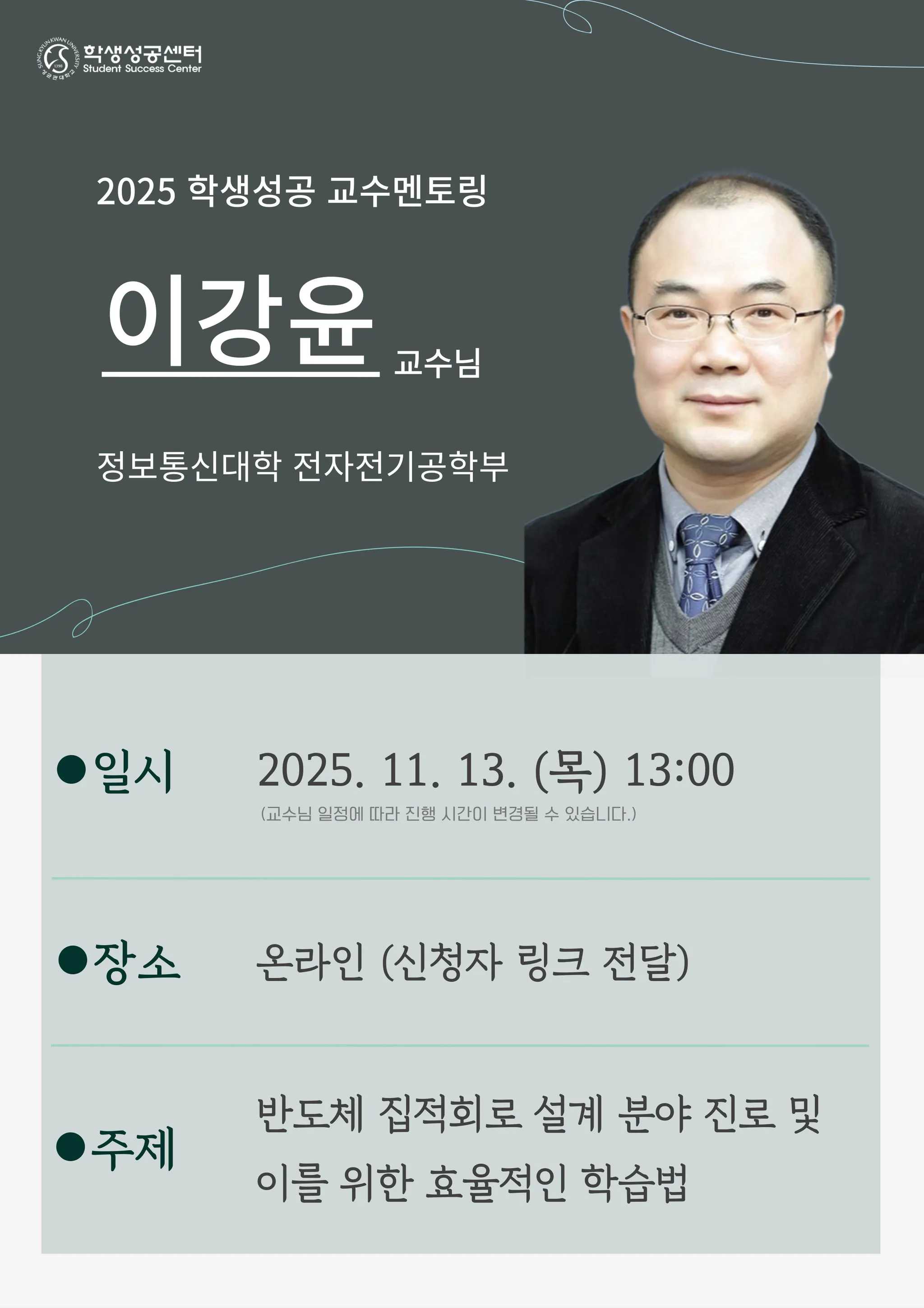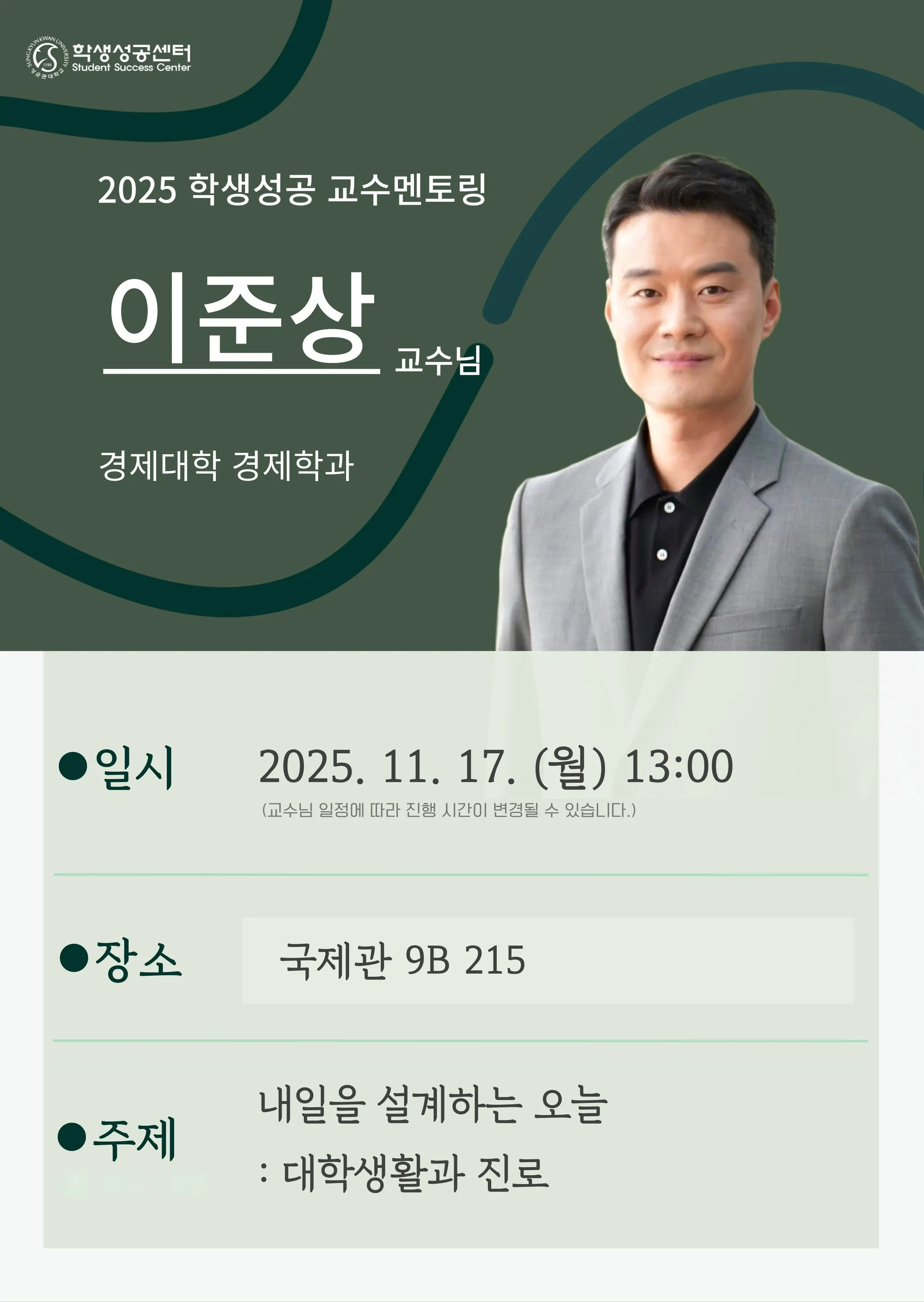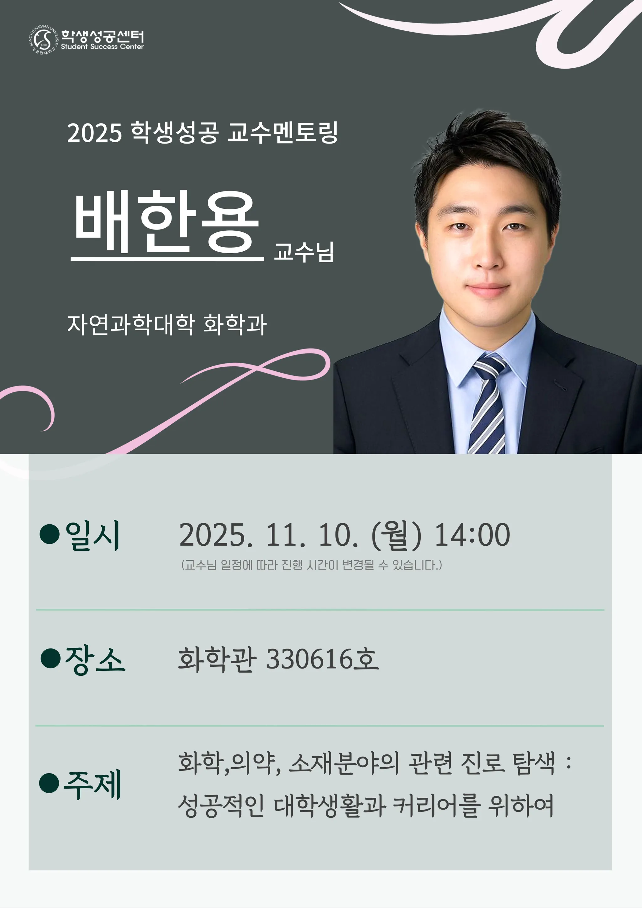 - 부득이한 사정으로 불참할 경우 멘토링 시작 3일 전까지 학생성공센터에 연락 요망