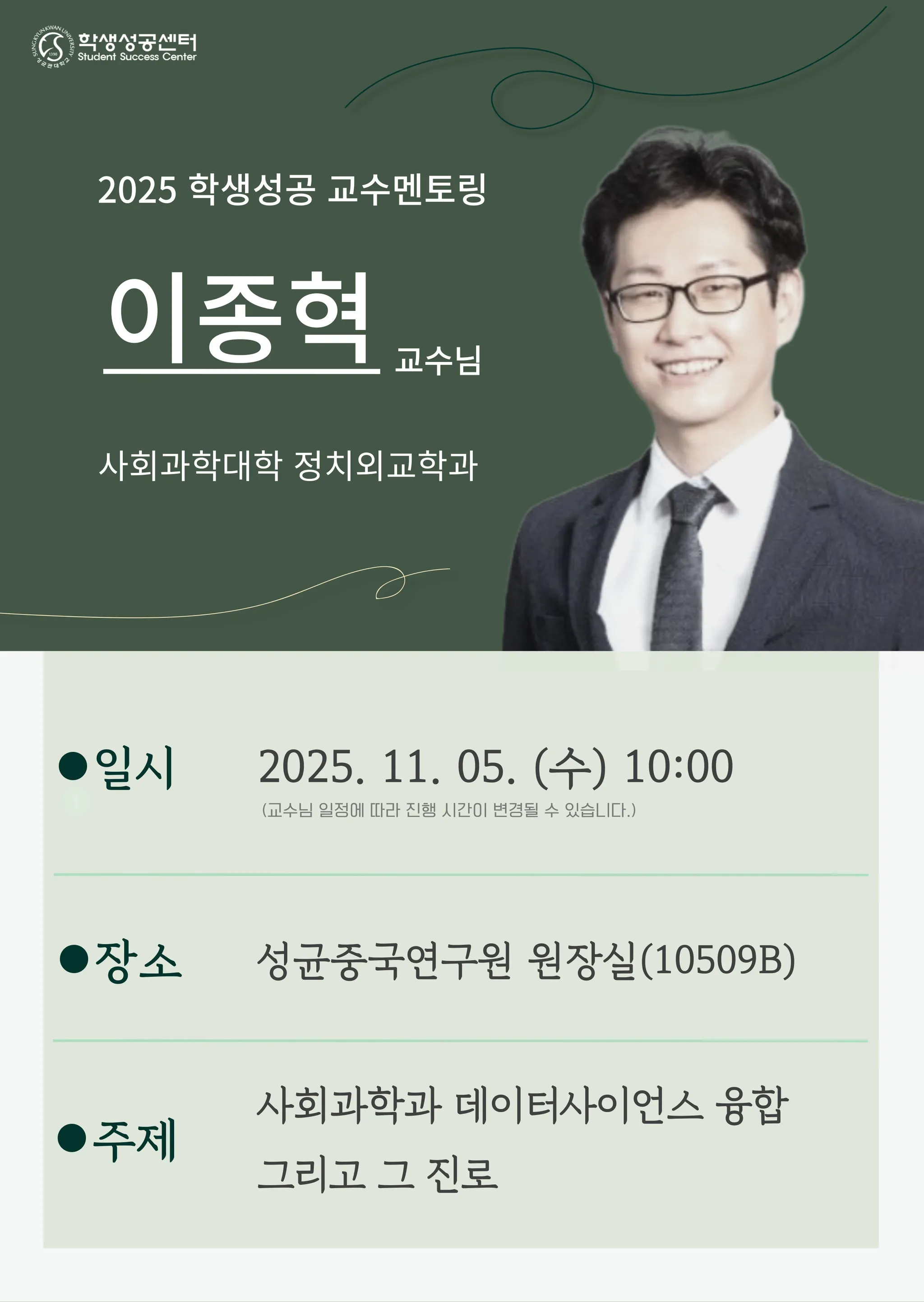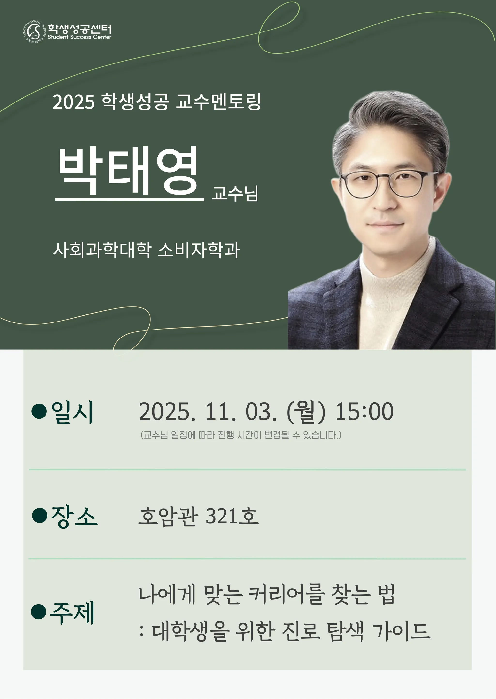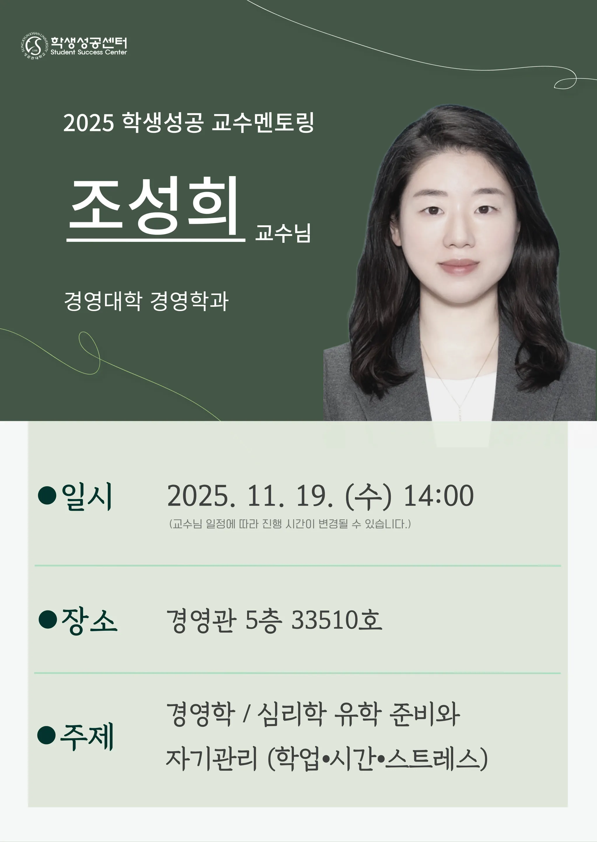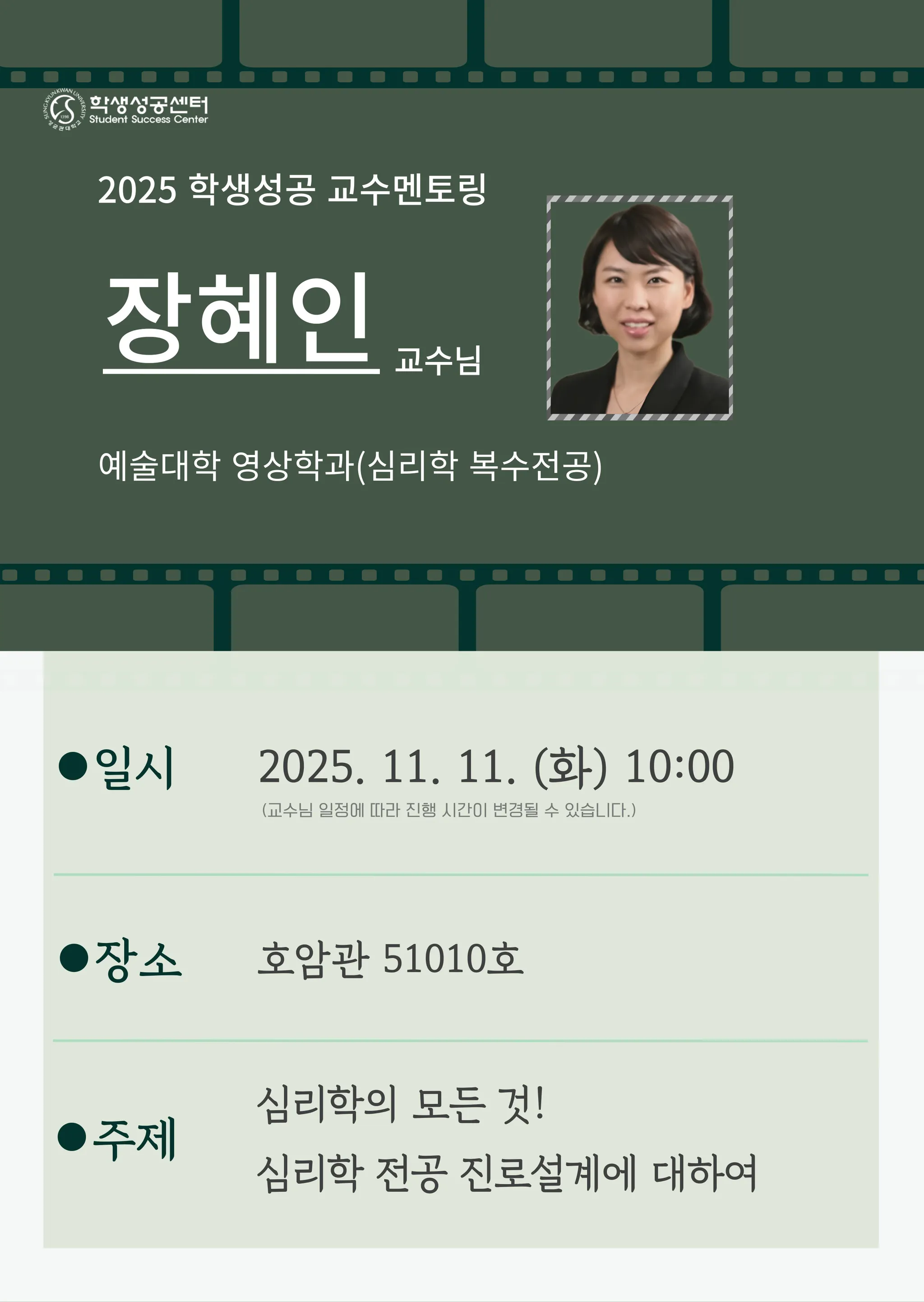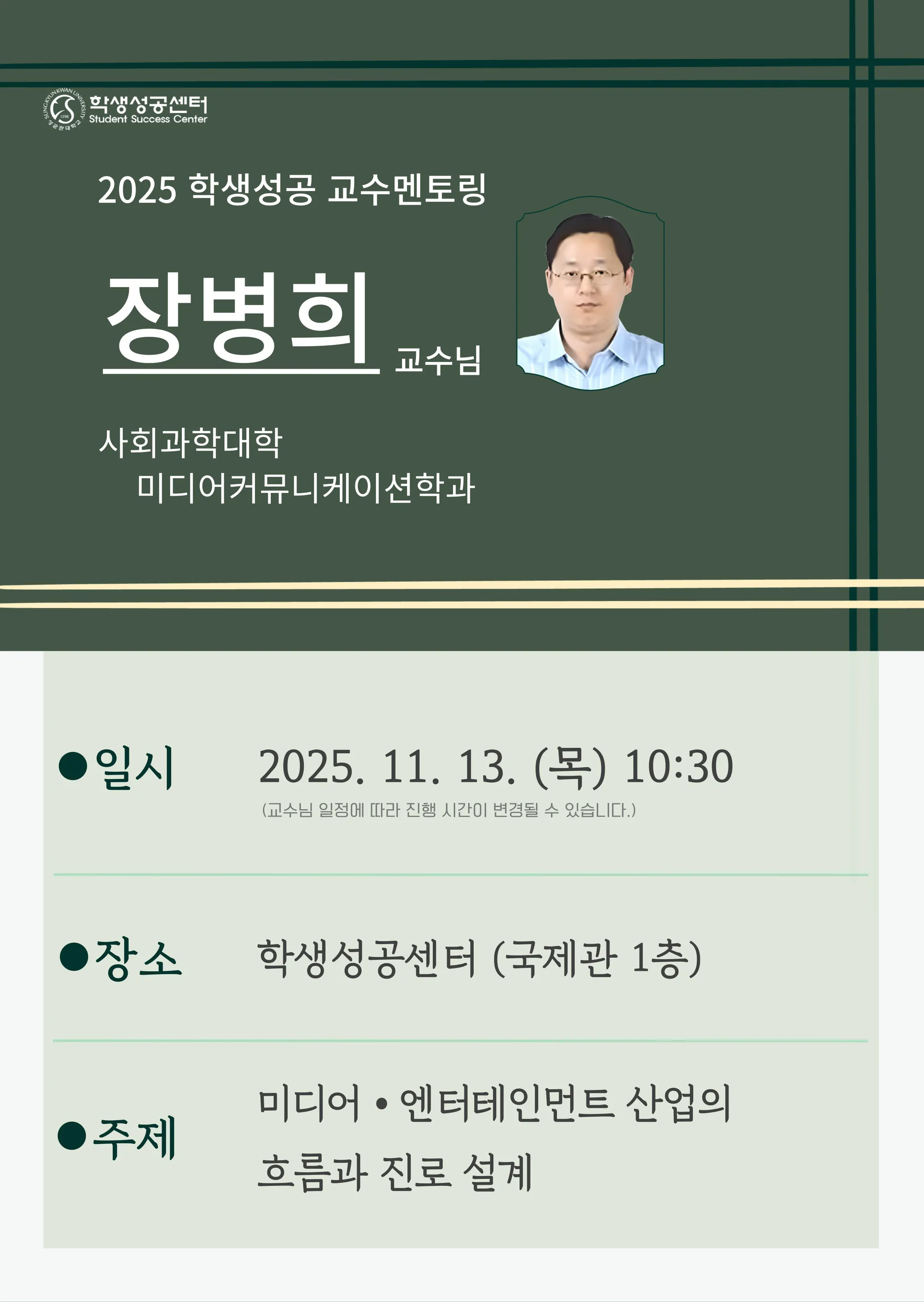 - 부득이한 사정으로 불참할 경우 멘토링 시작 3일 전까지 학생성공센터에 연락 요망