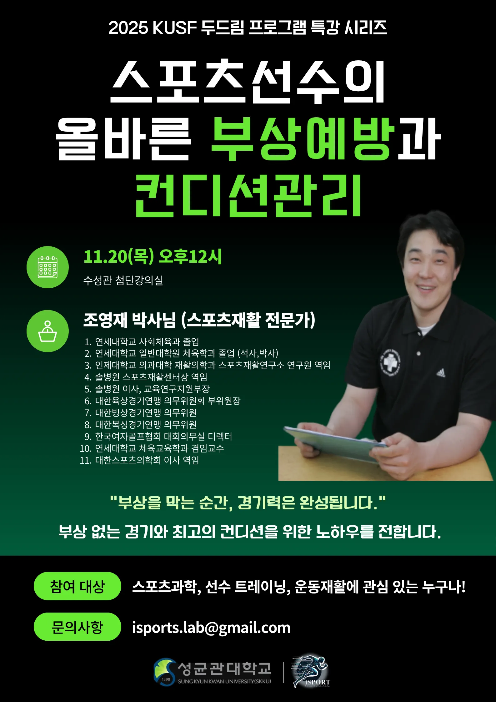 2025 KUSF 두드림 프로그램 특강 시리즈 첫번째-스포츠선수의 올바른 부상예방과 컨디션관리