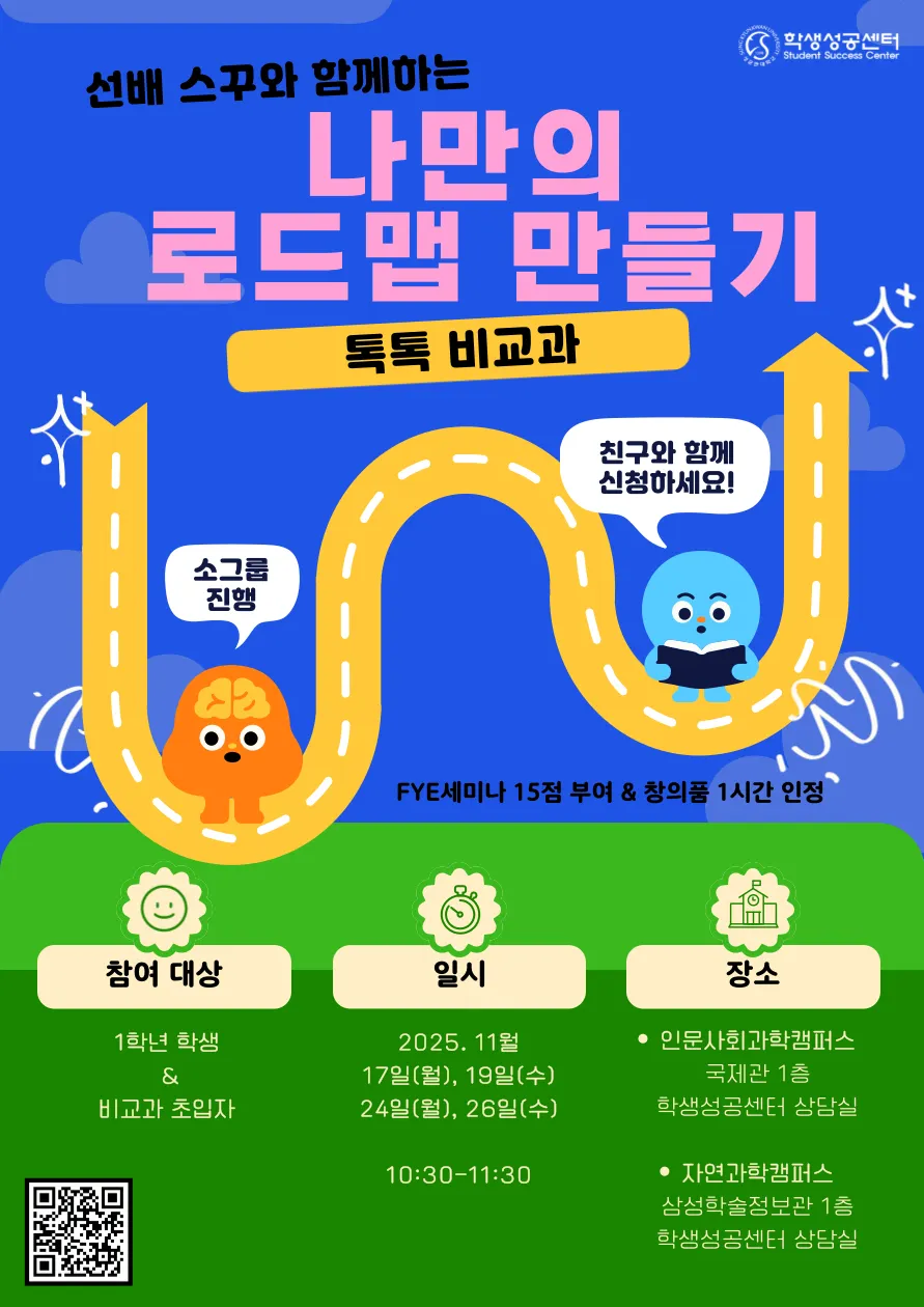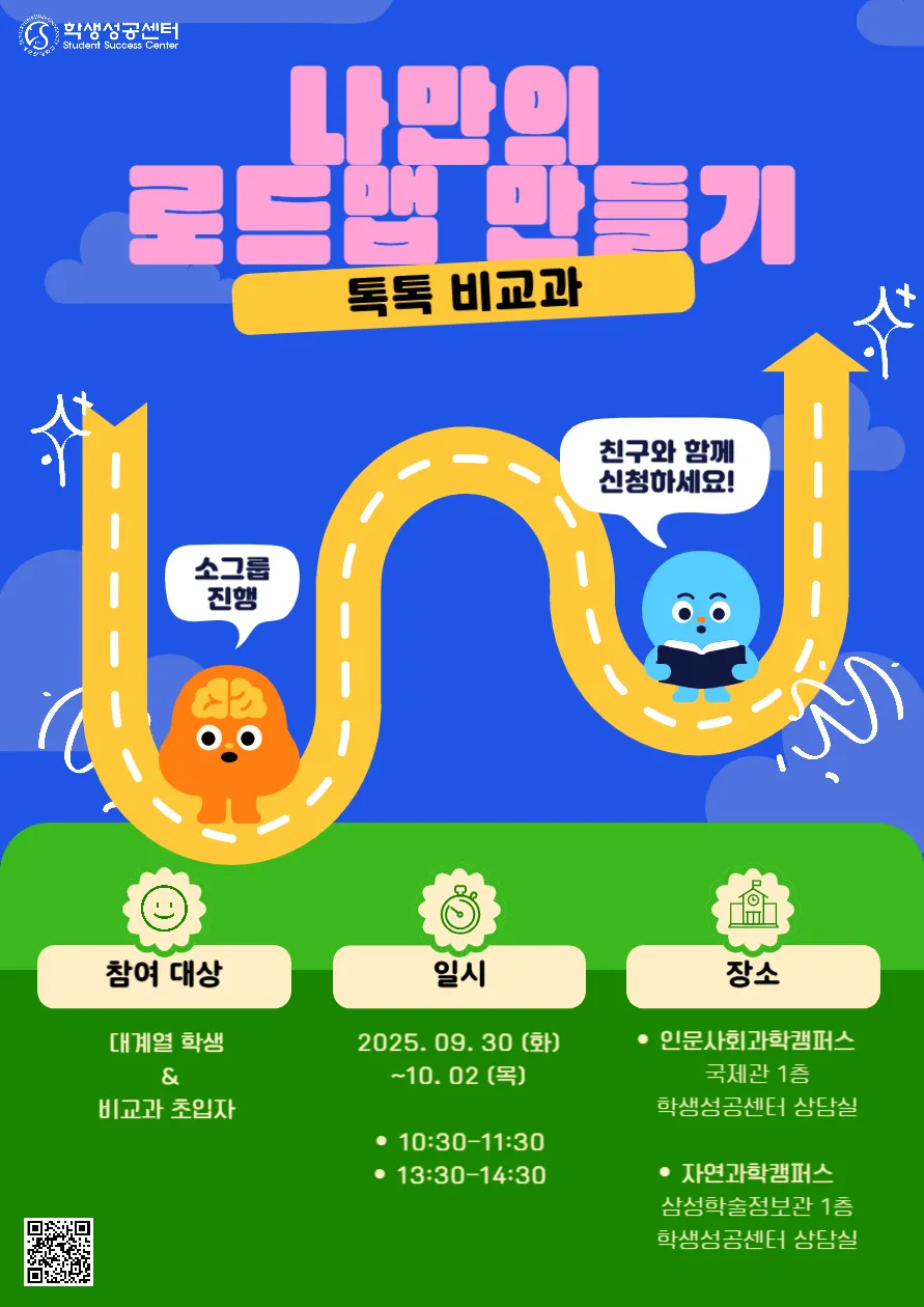 비교과 참여 우수 사례를 공유하고, 학생 개인의 진로·전공 탐색에 필요한 비교과 활동을 계획할 수 있도록 하여, 대학 생활 설계 지원 및 학생성공역량 개발을 촉진하고자 함