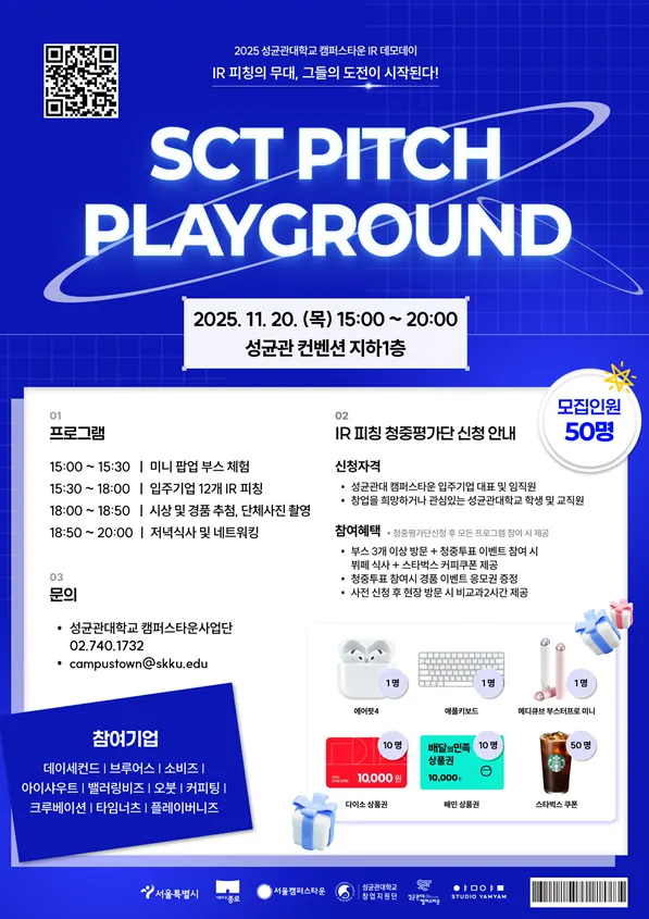 모집대상: 캠퍼스타운 입주기업 및 구성원(팀원 포함), 성균관대학교 구성원