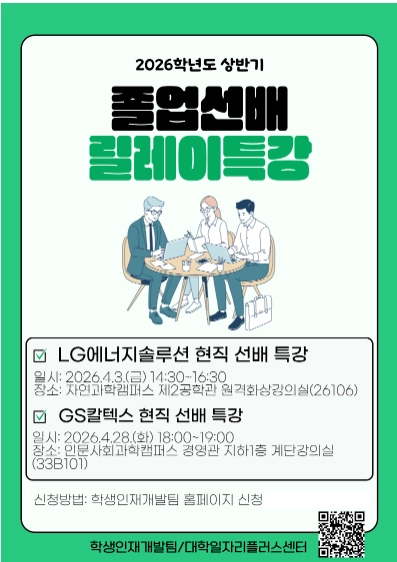 LG에너지솔루션, GS칼텍스에 재직하고 계시는 선배님들께서 후배 여러분들을 위해 특강을 진행할 예정입니다.