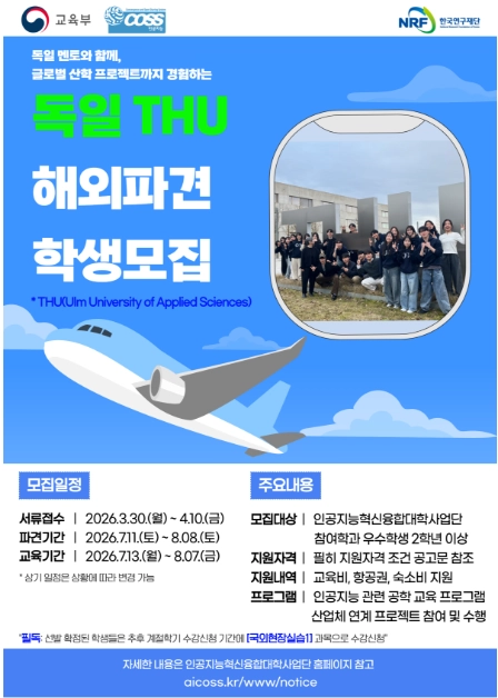 독일 THU (Ulm University of Applied Sciences)와 함께하는 AICOSS-THU 글로벌 학생 프로그램이 여러분을 기다립니다!
