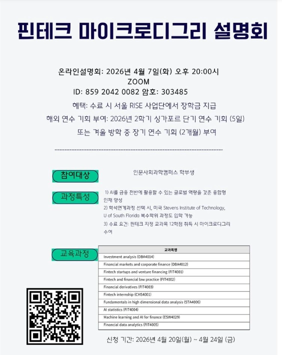 2026학년도 핀테크 마이크로 디그리 온라인 설명회를 다음과 같이 개최하오니
