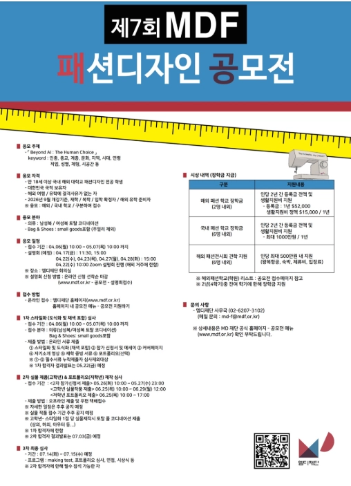올해 7회를 맞이한 MD재단에서 “제7회 MDF 패션디자인 공모전”을 진행합니다.